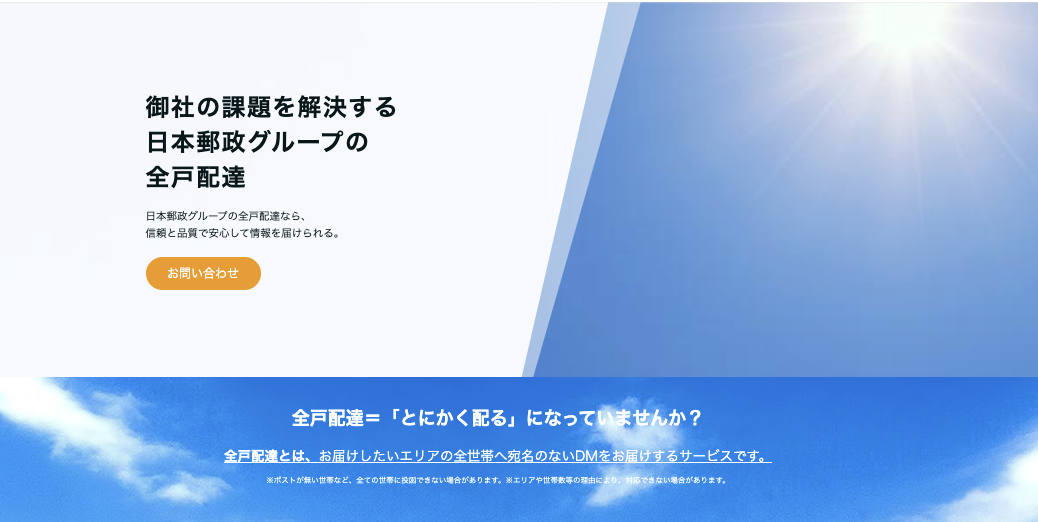 日本郵政グループの信頼性を基盤に、高品質なサービスを提供しています。年間予算1億円以上の企業の79%が重視する「配布品質の確実性」を担保するため、配布証明書の発行や、万が一の際の無償再配布保証などもご用意しています。